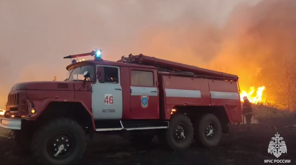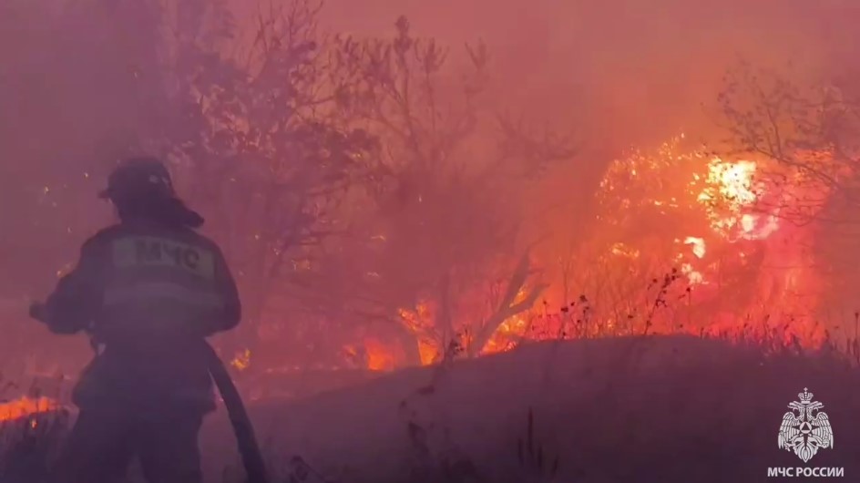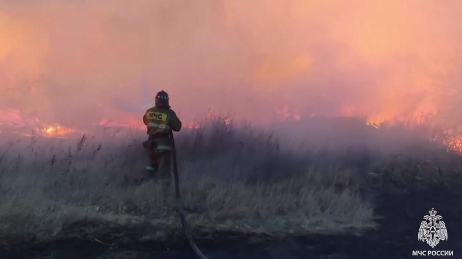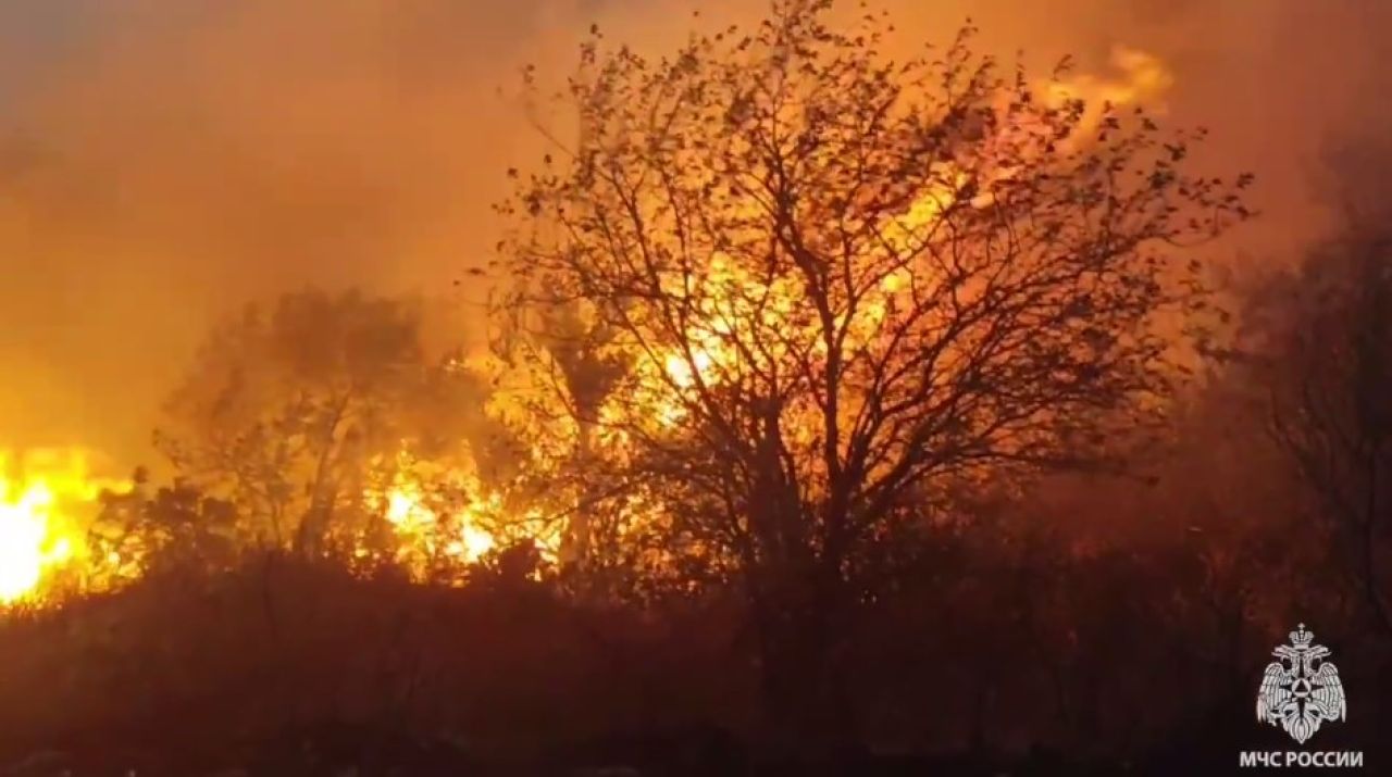 Спасатели МЧС России борются с масштабнейшим пожаром в посёлках Степной и Лесной Антрацитовского муниципального округа.