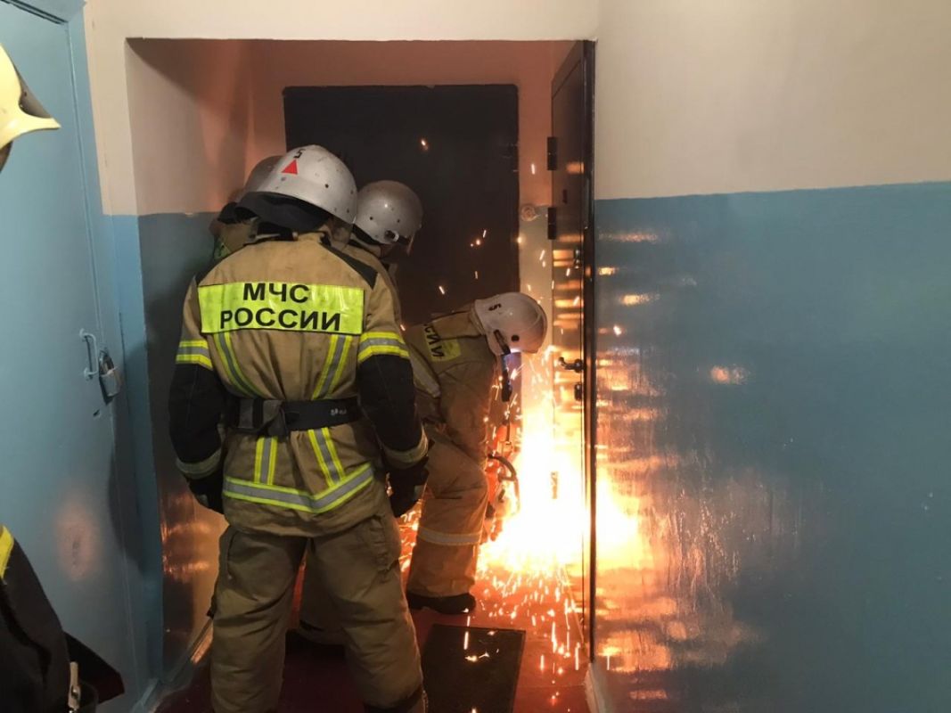 Прибывшие на место сотрудники МЧС при помощи бензореза в кратчайшие сроки произвели вскрытие двери квартиры, обеспечив доступ медиков к женщине.