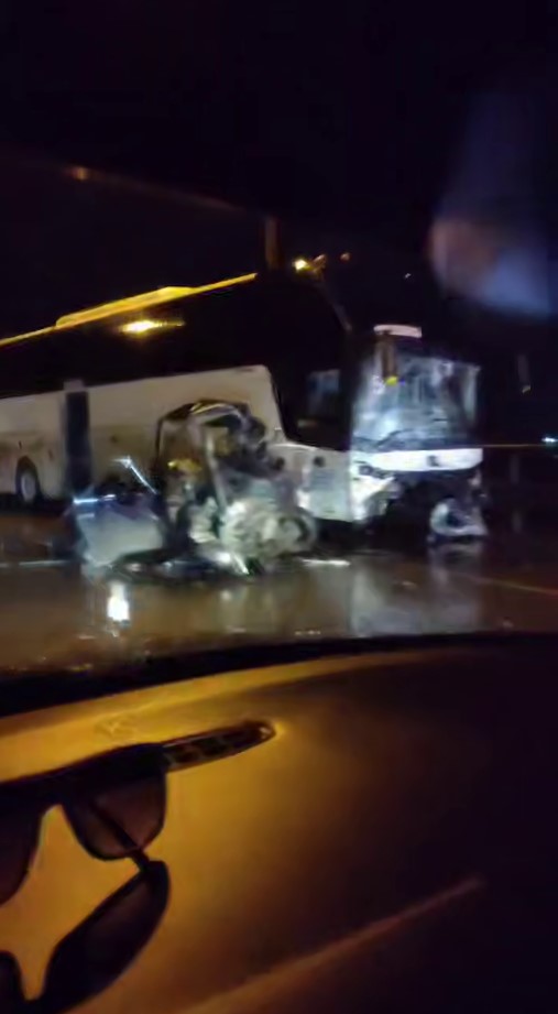 Сообщается, что на данном участке дороги столкнулись автобус и легковой автомобиль. Согласно информации очевидцев, перед столкновением автобус ехал по встречной полосе. Двое парней из легковушки скончались в результате столкновения.