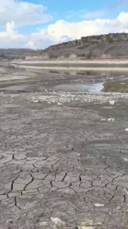 Кадры высохшего водоёма появились в Telegram-канале «Красный Луч. Лента новостей и обсуждений».