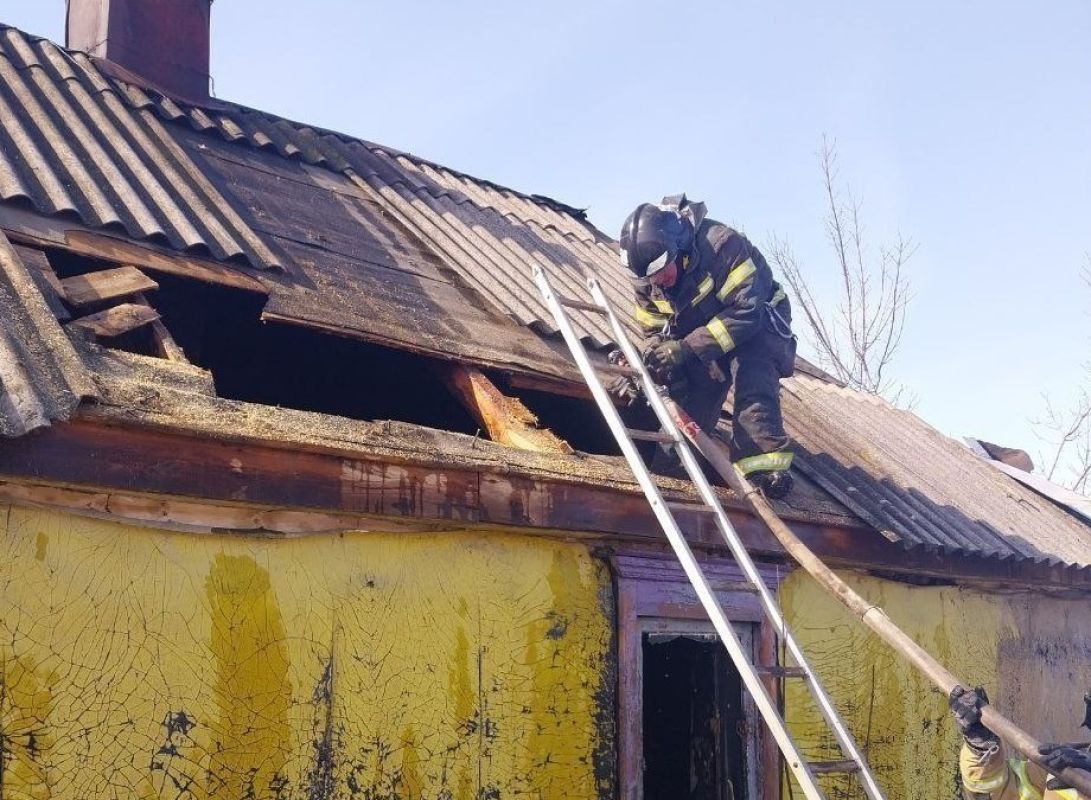 Частный дом в селе Дзержинское пострадал от огня после того, как при растопке печи произошло выброс пламени.