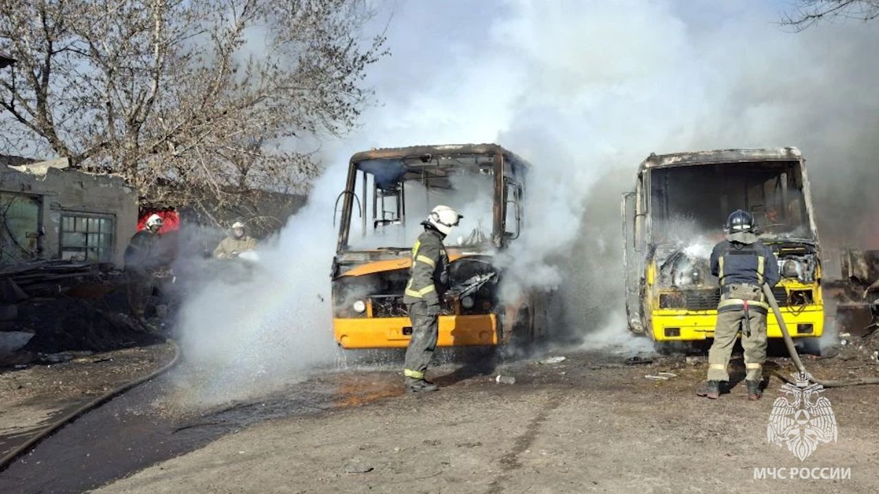 Пожар возник на территории бывшего автотранспортного предприятия, которое в настоящее время не работает. К моменту прибытия первого расчёта дежурного караула огнём были охвачены два автобуса, находившиеся на открытой площадке.