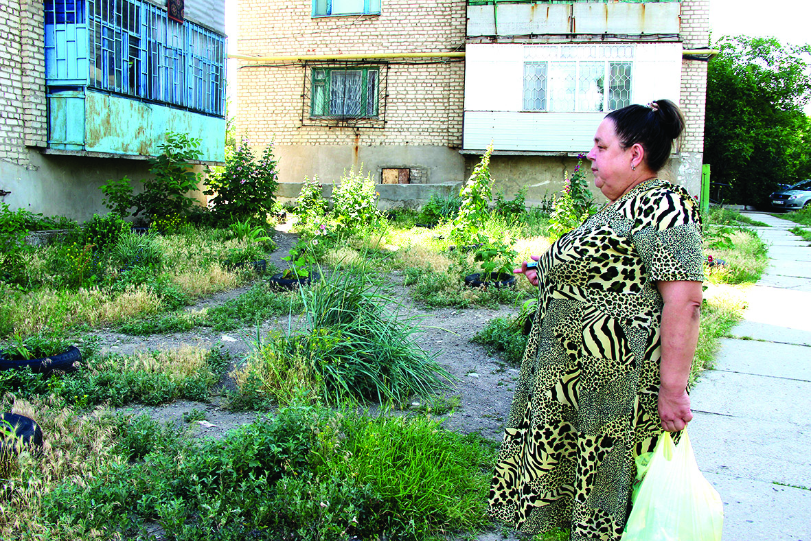 Следующая проблема – высокие сорняки в палисадниках и по всей площади двора. Раньше возле первого подъезда одна из жительниц выращивала тюльпаны, пионы. Чтобы никто не затоптал клумбы, их огородили старыми покрышками. Для создания тени возле дома Наталья Юрьевна посадила молодые деревья. Для клумбы за домом привозили землю на нескольких грузовиках.