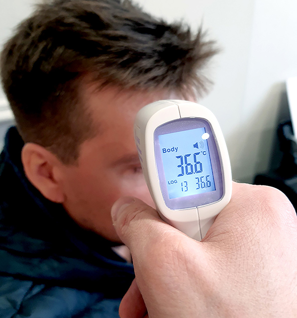 На входе всем измеряли температуру и только потом разрешали проехать.