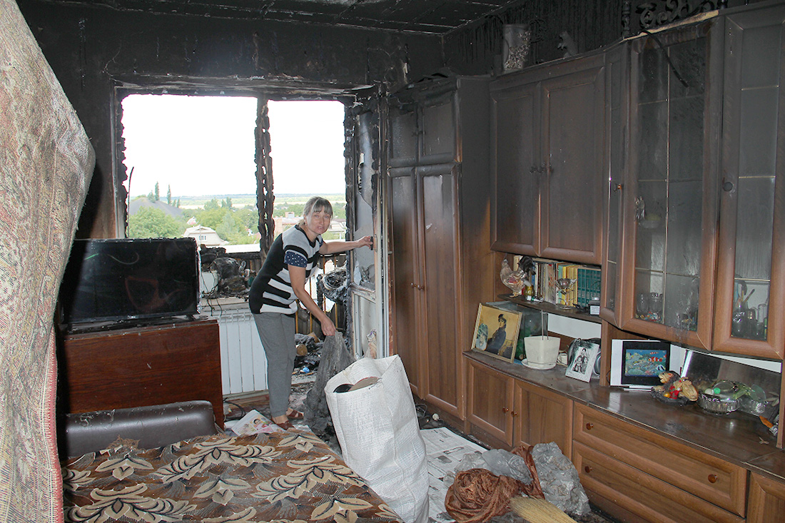 Когда сказали, что пожар ликвидирован, было очень страшно зайти в квартиру. Ведь все, что было нажито годами, уничтожено. Вместо балкона, голая стена, через которую видна улица. В квартире закопченные стены, двери, мебель, вещи. Теперь все это нужно менять, а таких денег у нашей семьи нет. Первую ночь после пожара мы не могли уснуть. У супруга из-за стресса поднялось давление, вызывали скорую помощь. Еще и всю ночь шел дождь, мало того, что в квартире одна гарь, так еще гуляет ветер, и потолок протекает по всем квартирам. Очень надеемся, что администрация нам поможет в восстановлении крыши, ведь зима не за горами.