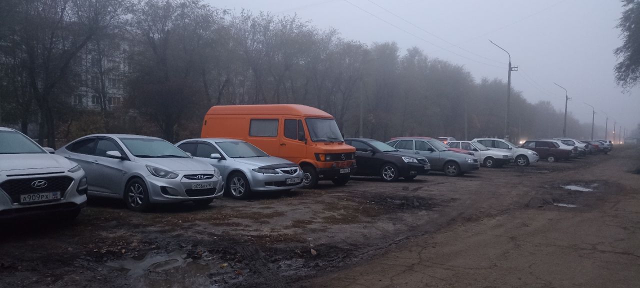 «Утро возле 9 дома на Волкова. Вопрос не к автомобилистам, им реально негде ставить машины, кроме как на газоне. Вопрос к Администрации: может проще заасфальтировать площадку, чтобы в непогоду не растягивать грязь по всему тротуару? Все равно машины тут будут.»