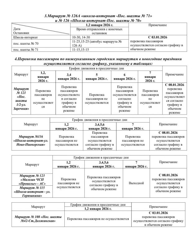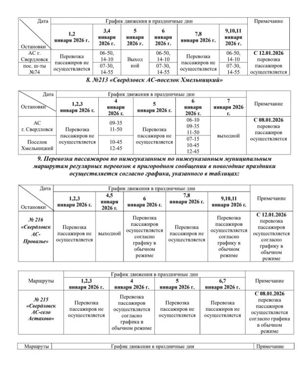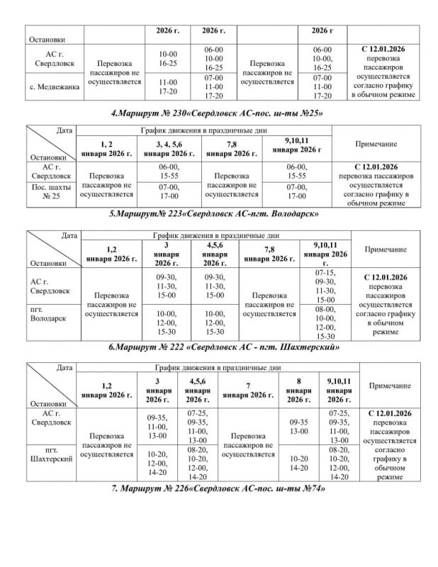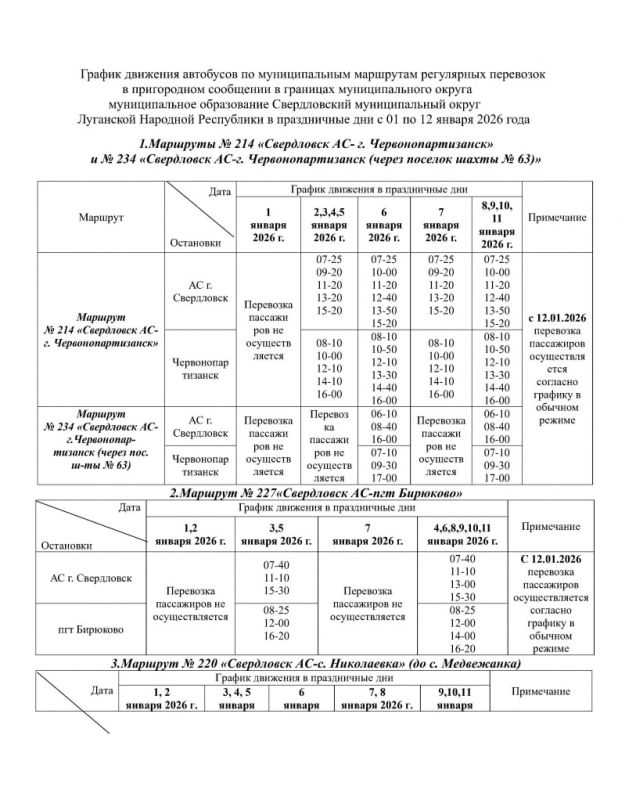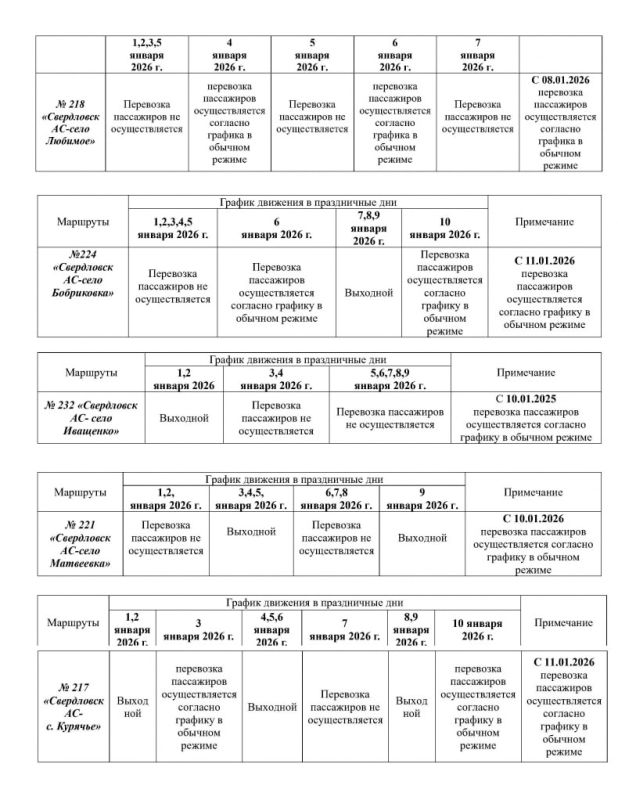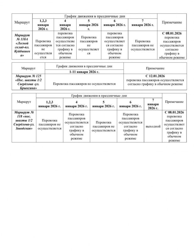 Администрация Свердловска опубликовала на официальном сайте график работы общественного транспорта в период с 1 по 12 января 2026 года.