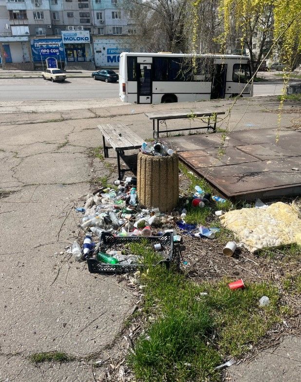 «Остановка кв. Дружба, возле дома 1 ,почему вокруг урны никто не убирает окурки?»